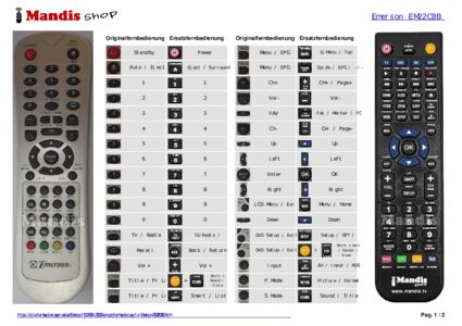 Ein Dokument ist enthalten, um die Verwendung der neuen Fernbedienung zu erleichtern, indem es die Tastenbelegung zeigt.