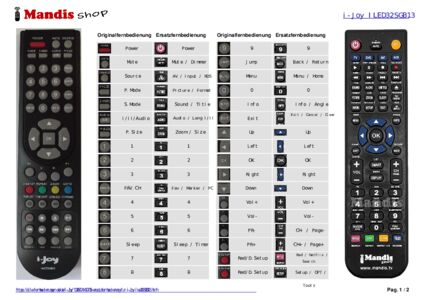 Ein Dokument ist enthalten, um die Verwendung der neuen Fernbedienung zu erleichtern, indem es die Tastenbelegung zeigt.