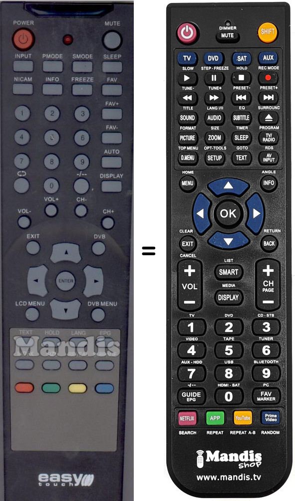 Es handelt sich jedoch nicht um eine Universalfernbedienung sondern um eine Fernbedienung die das Original ersetzt.