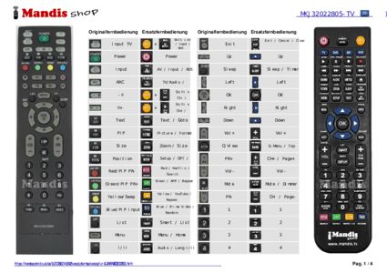 Im Folgenden zeigen wir Ihnen die Zuordnung jedes einzelnen Knopfes der Originalfernbedienung zu der Taste, die dieselbe Funktion auf der Ersatzfernbedienung ausführt. In einigen Fällen müssen Sie möglicherweise die UMSCHALT-Taste drücken, bevor Sie eine andere Taste drücken, um bestimmte Aktionen auszuführen. Diese zusätzlichen Funktionen werden oft wenig genutzt und dienen dazu, das Verständnis der Ersatzfernbedienung zu erleichtern oder weil die Originalfernbedienung mehr Tasten hat als das entsprechende Modell.