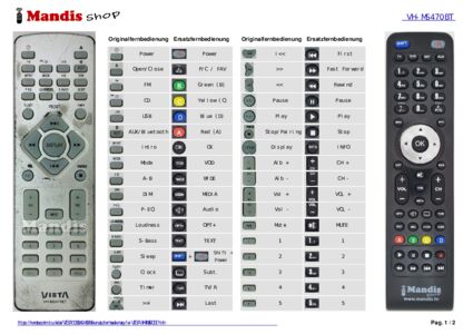 Ein Dokument ist enthalten, um die Verwendung der neuen Fernbedienung zu erleichtern, indem es die Tastenbelegung zeigt.