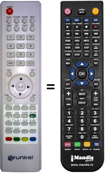 Fernbedienung, die das Original und die Gesamtheit seiner Funktionen, vollständig ersetzt. Es handelt sich jedoch nicht um eine Universalfernbedienung sondern um eine Fernbedienung die das Original ersetzt. Sie erhalten eine nach Einlegen der Batterien sofort einsatzbereite Fernbedienung. Jegliches Programmieren entfällt. Wir geben umfassende Garantie dafür, dass diese Fernbedienung alle Funktionen der Originalfernbedienung erfüllt.