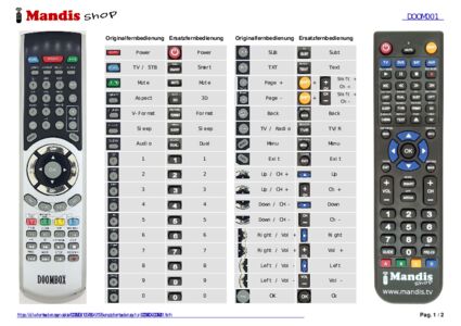 Ein Dokument ist enthalten, um die Verwendung der neuen Fernbedienung zu erleichtern, indem es die Tastenbelegung zeigt.