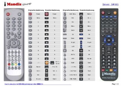 Ein Dokument ist enthalten, um die Verwendung der neuen Fernbedienung zu erleichtern, indem es die Tastenbelegung zeigt.