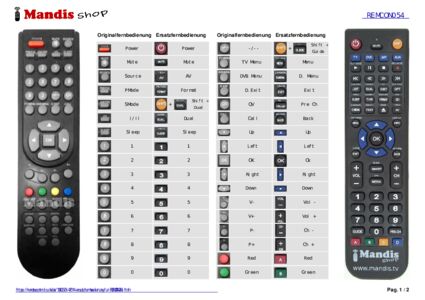 Ein Dokument ist enthalten, um die Verwendung der neuen Fernbedienung zu erleichtern, indem es die Tastenbelegung zeigt.