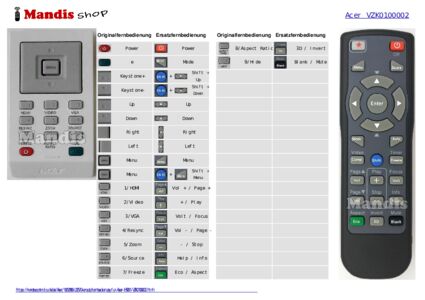 Home > Marken > Fernbedienungen Acer > Fernbedienung für Acer VZK0100002 > Interaktive Tastenbelegung Acer VZK0100002