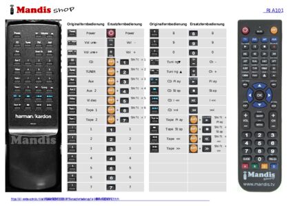 Diese Fernbedienung ersetzt die meisten Funktionen Ihres RIA101. Es ist keine Universalfernbedienung, sondern eine Kopie mit den meisten Tasten und Funktionen Ihres Originals.