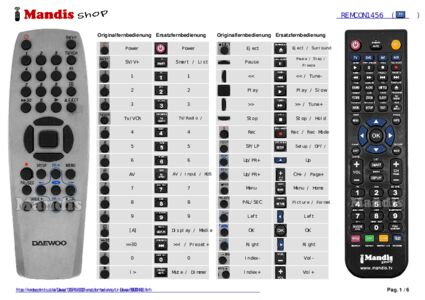 Ein Dokument ist enthalten, um die Verwendung der neuen Fernbedienung zu erleichtern, indem es die Tastenbelegung zeigt.