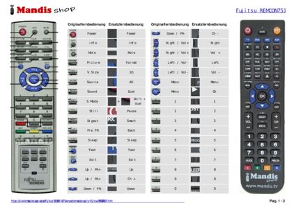 Ein Dokument ist enthalten, um die Verwendung der neuen Fernbedienung zu erleichtern, indem es die Tastenbelegung zeigt.