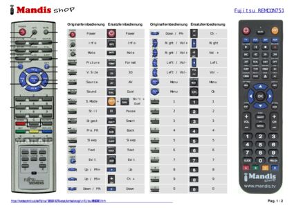 Ein Dokument ist enthalten, um die Verwendung der neuen Fernbedienung zu erleichtern, indem es die Tastenbelegung zeigt.