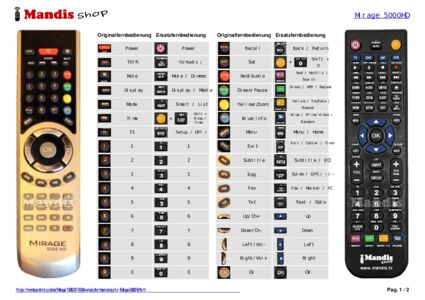 Home > Marken > Fernbedienungen Mirage > Fernbedienung für Mirage 5000HD > Interaktive Tastenbelegung Mirage 5000HD