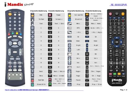 Ein Dokument ist enthalten, um die Verwendung der neuen Fernbedienung zu erleichtern, indem es die Tastenbelegung zeigt.