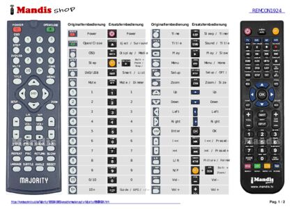 Ein Dokument ist enthalten, um die Verwendung der neuen Fernbedienung zu erleichtern, indem es die Tastenbelegung zeigt.