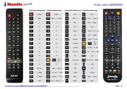 Ein Dokument ist enthalten, um die Verwendung der neuen Fernbedienung zu erleichtern, indem es die Tastenbelegung zeigt.