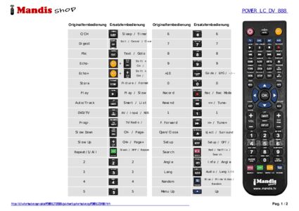 Home > Marken > Fernbedienungen POWER LC > Fernbedienung für POWER LC DV 888 > Interaktive Tastenbelegung POWER LC DV 888