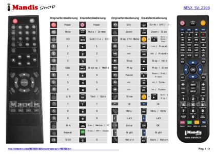 Ein Dokument ist enthalten, um die Verwendung der neuen Fernbedienung zu erleichtern, indem es die Tastenbelegung zeigt.