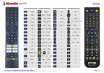 Ein Dokument ist enthalten, um die Verwendung der neuen Fernbedienung zu erleichtern, indem es die Tastenbelegung zeigt.