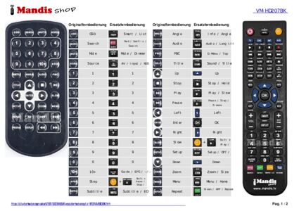 Ein Dokument ist enthalten, um die Verwendung der neuen Fernbedienung zu erleichtern, indem es die Tastenbelegung zeigt.