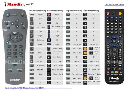Home > Marken > Fernbedienungen Grandin > Fernbedienung für Grandin GOLD001 > Interaktive Tastenbelegung Grandin GOLD001