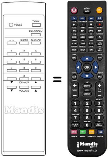 Fernbedienung, die das Original und die Gesamtheit seiner Funktionen, vollständig ersetzt.