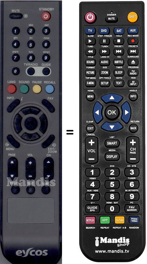 Fernbedienung, die das Original und die Gesamtheit seiner Funktionen, vollständig ersetzt. Es handelt sich jedoch nicht um eine Universalfernbedienung sondern um eine Fernbedienung die das Original ersetzt. Sie erhalten eine nach Einlegen der Batterien sofort einsatzbereite Fernbedienung. Jegliches Programmieren entfällt. Wir geben umfassende Garantie dafür, dass diese Fernbedienung alle Funktionen der Originalfernbedienung erfüllt.