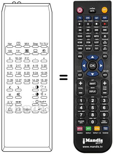 Fernbedienung, die das Original und die Gesamtheit seiner Funktionen, vollständig ersetzt. Es handelt sich jedoch nicht um eine Universalfernbedienung sondern um eine Fernbedienung die das Original ersetzt. Sie erhalten eine nach Einlegen der Batterien sofort einsatzbereite Fernbedienung. Jegliches Programmieren entfällt. Wir geben umfassende Garantie dafür, dass diese Fernbedienung alle Funktionen der Originalfernbedienung erfüllt.