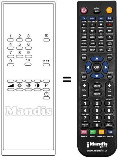 Fernbedienung, die das Original und die Gesamtheit seiner Funktionen, vollständig ersetzt. Es handelt sich jedoch nicht um eine Universalfernbedienung sondern um eine Fernbedienung die das Original ersetzt. Sie erhalten eine nach Einlegen der Batterien sofort einsatzbereite Fernbedienung. Jegliches Programmieren entfällt. Wir geben umfassende Garantie dafür, dass diese Fernbedienung alle Funktionen der Originalfernbedienung erfüllt.