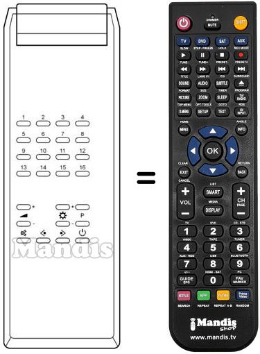Fernbedienung, die das Original und die Gesamtheit seiner Funktionen, vollständig ersetzt. Es handelt sich jedoch nicht um eine Universalfernbedienung sondern um eine Fernbedienung die das Original ersetzt. Sie erhalten eine nach Einlegen der Batterien sofort einsatzbereite Fernbedienung. Jegliches Programmieren entfällt. Wir geben umfassende Garantie dafür, dass diese Fernbedienung alle Funktionen der Originalfernbedienung erfüllt.