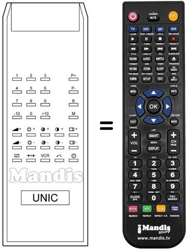 Fernbedienung, die das Original und die Gesamtheit seiner Funktionen, vollständig ersetzt. Es handelt sich jedoch nicht um eine Universalfernbedienung sondern um eine Fernbedienung die das Original ersetzt. Sie erhalten eine nach Einlegen der Batterien sofort einsatzbereite Fernbedienung. Jegliches Programmieren entfällt. Wir geben umfassende Garantie dafür, dass diese Fernbedienung alle Funktionen der Originalfernbedienung erfüllt.