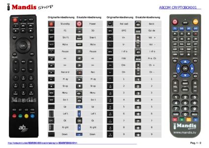 Ein Dokument ist enthalten, um die Verwendung der neuen Fernbedienung zu erleichtern, indem es die Tastenbelegung zeigt.