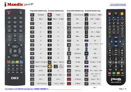 Ein Dokument ist enthalten, um die Verwendung der neuen Fernbedienung zu erleichtern, indem es die Tastenbelegung zeigt.