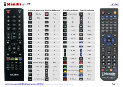 Ein Dokument ist enthalten, um die Verwendung der neuen Fernbedienung zu erleichtern, indem es die Tastenbelegung zeigt.