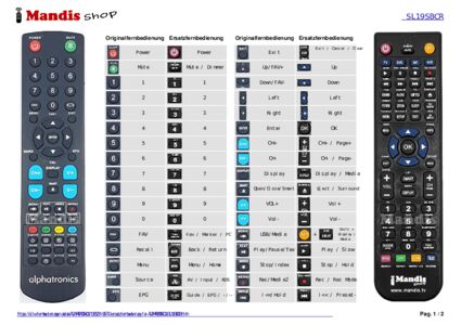 Ein Dokument ist enthalten, um die Verwendung der neuen Fernbedienung zu erleichtern, indem es die Tastenbelegung zeigt.