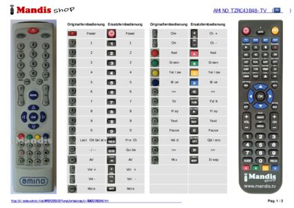 Ein Dokument ist enthalten, um die Verwendung der neuen Fernbedienung zu erleichtern, indem es die Tastenbelegung zeigt.