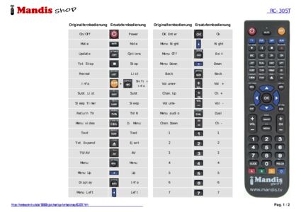 Diese Fernbedienung ersetzt Ihre RC 305T in vollem Umfang und bietet alle Funktionen des Originals.