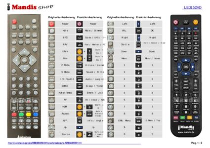 Diese Fernbedienung ersetzt Ihre LED15DVD-1 in vollem Umfang und bietet alle Funktionen des Originals.