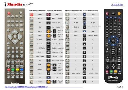 Ein Dokument ist enthalten, um die Verwendung der neuen Fernbedienung zu erleichtern, indem es die Tastenbelegung zeigt.
