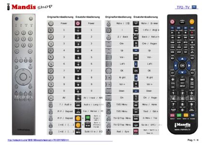 Ein Dokument ist enthalten, um die Verwendung der neuen Fernbedienung zu erleichtern, indem es die Tastenbelegung zeigt.