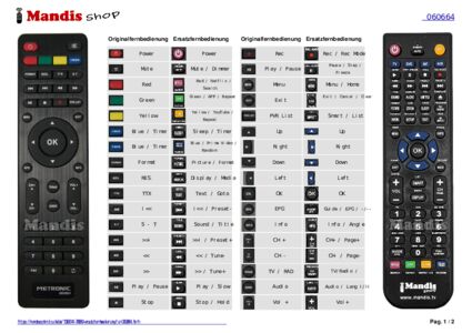 Ein Dokument ist enthalten, um die Verwendung der neuen Fernbedienung zu erleichtern, indem es die Tastenbelegung zeigt.