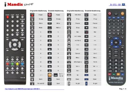 Ein Dokument ist enthalten, um die Verwendung der neuen Fernbedienung zu erleichtern, indem es die Tastenbelegung zeigt.