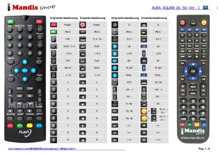 Ein Dokument ist enthalten, um die Verwendung der neuen Fernbedienung zu erleichtern, indem es die Tastenbelegung zeigt.