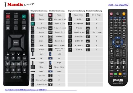 Fernbedienung für Acer VZJCQ00002