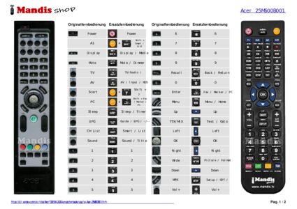 Ein Dokument ist enthalten, um die Verwendung der neuen Fernbedienung zu erleichtern, indem es die Tastenbelegung zeigt.