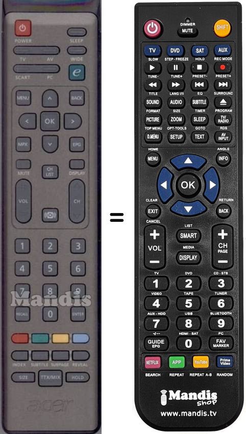 Es handelt sich jedoch nicht um eine Universalfernbedienung sondern um eine Fernbedienung die das Original ersetzt.