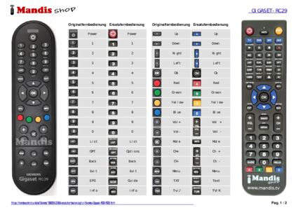 Ein Dokument ist enthalten, um die Verwendung der neuen Fernbedienung zu erleichtern, indem es die Tastenbelegung zeigt.