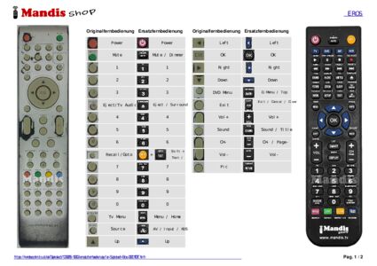 Ein Dokument ist enthalten, um die Verwendung der neuen Fernbedienung zu erleichtern, indem es die Tastenbelegung zeigt.