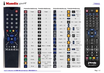 Ein Dokument ist enthalten, um die Verwendung der neuen Fernbedienung zu erleichtern, indem es die Tastenbelegung zeigt.