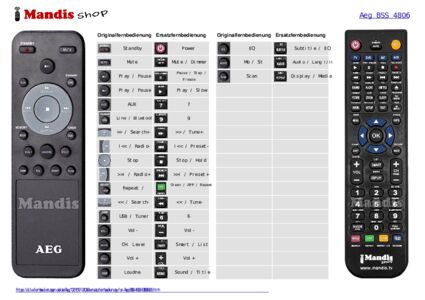 Ein Dokument ist enthalten, um die Verwendung der neuen Fernbedienung zu erleichtern, indem es die Tastenbelegung zeigt.