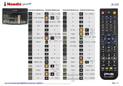 Diese Fernbedienung ersetzt Ihre RC-EX5 in vollem Umfang und bietet alle Funktionen des Originals.