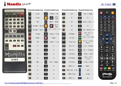 Diese Fernbedienung ersetzt Ihre RC-T10LE in vollem Umfang und bietet alle Funktionen des Originals.